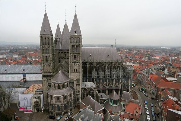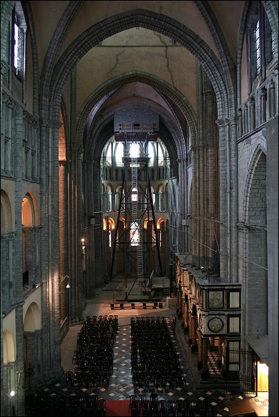 Cette page est un reportage incomplet sur la partie haute de la cathédrale de Tournai. On distingue habituellement la partie basse (nef, choeur, transept) de la partie haute (comble, tour, triforium). Un reportage complet serait nécessaire !!!