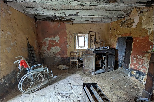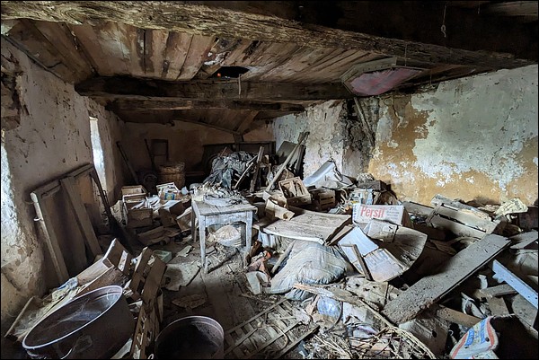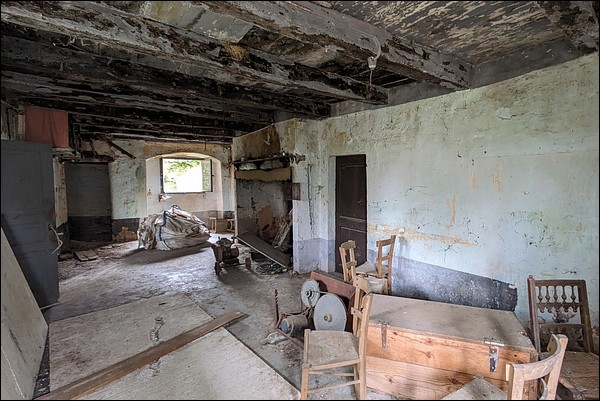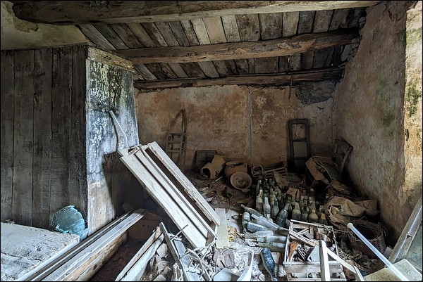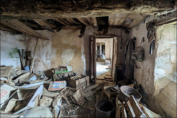 And yet, in this small hamlet where life seems built on the solidarity of a few families, could it be an old family home, an ancestor's house kept because no one knows what to do with it—some fabulous joint ownership or who knows what? In short, a place not as abandoned as it seems? Doubt will exist in almost every location, anyway; what drives me to speak of it is the absence of family records (photos, letters) and the fact that it is ruined and wide open.