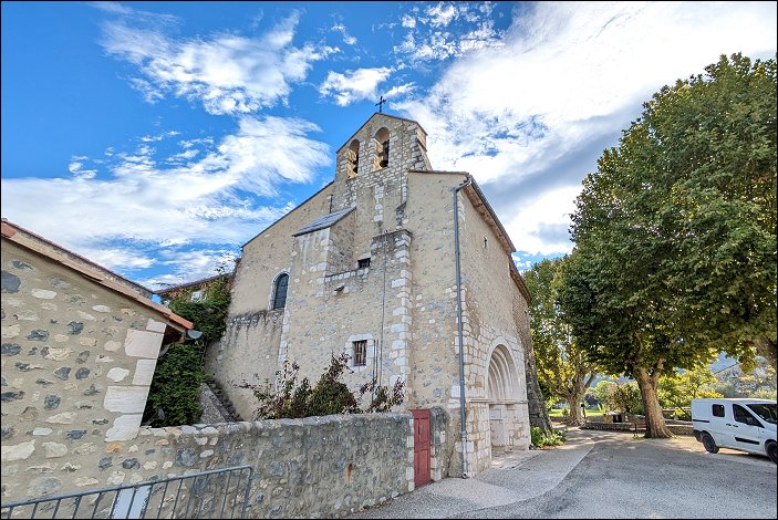 Saint-Maurice-d’Ibie est un petit village de grand charme, isolé au milieu d’une campagne magnifique. L’église comporte un clocher peigne, qui suspend deux cloches. Dans des conditions tout à fait scabreuses, il serait possible d’y monter. Nous avons choisi de documenter en drone.