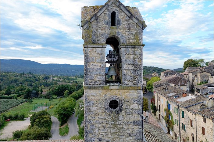 Voici une exploration campanaire de l'église de Vallon-Pont-d'Arc. Je remercie vivement les services techniques de la mairie pour l’accueil si chaleureux. En ce très joli village, l'église comporte deux cloches de volée placées dans des baies ouvertes, ainsi qu'une cloche de timbre placée un étage au-dessus.