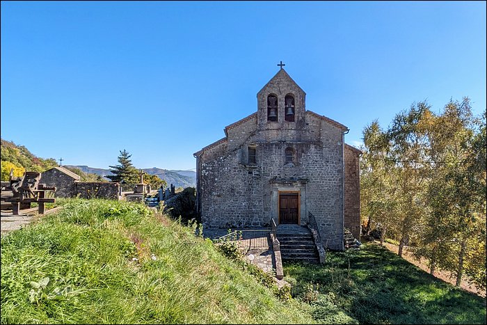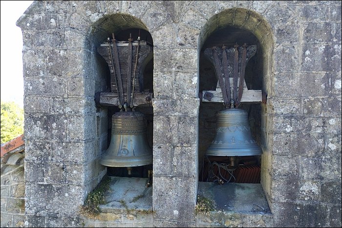 Elles sont au nombre de deux, localisées dans un clocher à deux baies ouvertes - ce fut peut-être un clocher peigne dans les temps originels. Documentées en drone, elles révèlent un état totalement hors service. L'église elle-même ne semble plus correspondre à une vie de village, placée totalement à l'écart dans les châtaigniers. Il s'agit d'une Gédéon Morel, datée plus ou moins 1840, et d'une Burdin Fils Aîné, modèle à stries et palmettes, datée de plus ou moins 1855. Les deux, montées en rétro-mitigé, sont complètement hors service.