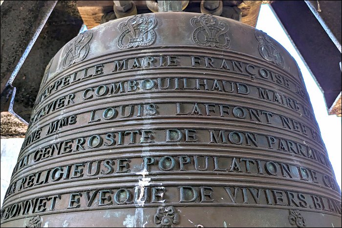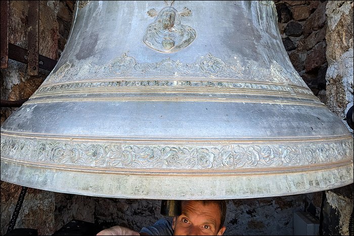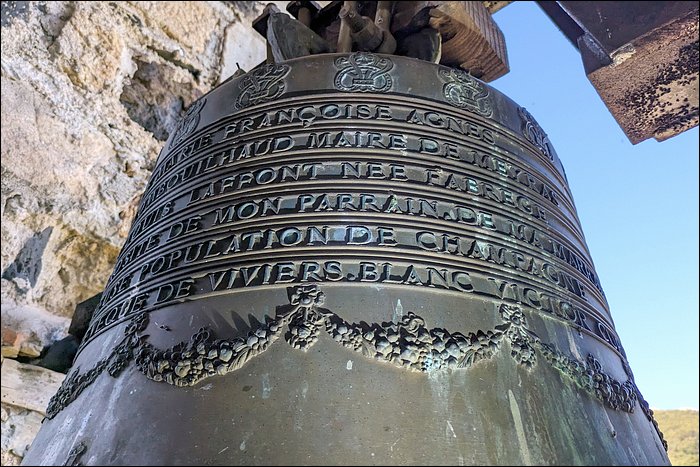 Toute une autre partie de dédicace est visible sur la face jour, mais je n’ai pas réussi à la lire. Elle décrit qu’elle annonce les appels à la messe, chasse les tempêtes, pleure les morts, etc, ce qui est classique. La date y est mentionnée, je n’ai pas pu la lire. Le créneau de datation que j’attribue est 1895 à quelques années près.