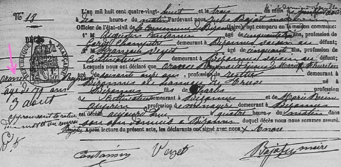 Décédé le 3 août 1888 à Bizonnes, Isère, à l'âge de 70 ans.