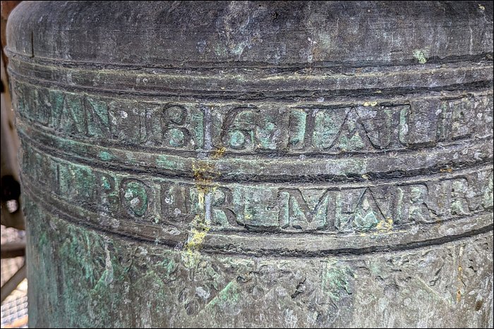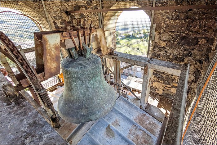 La cloche est commandée par un boîtier d’automation Paccard Harmony classic. La sonnerie est parfaite pour cette cloche à la métallurgie inévitablement un peu faible : le four au pied de l’église introduit la notion de coulée à la louche et donc d’anses à plus faible température. En tout et pour tout, le clocher autant que la commune sont une excellente surprise.