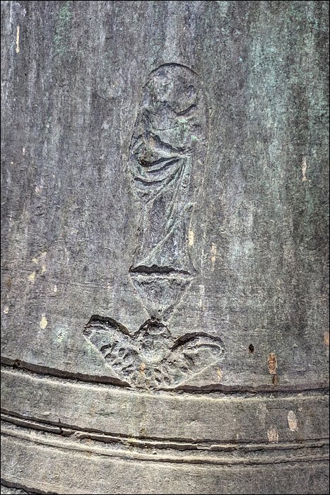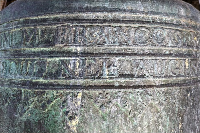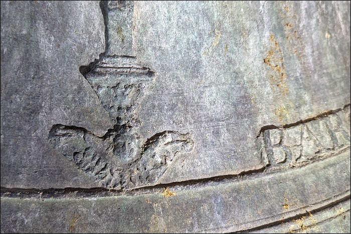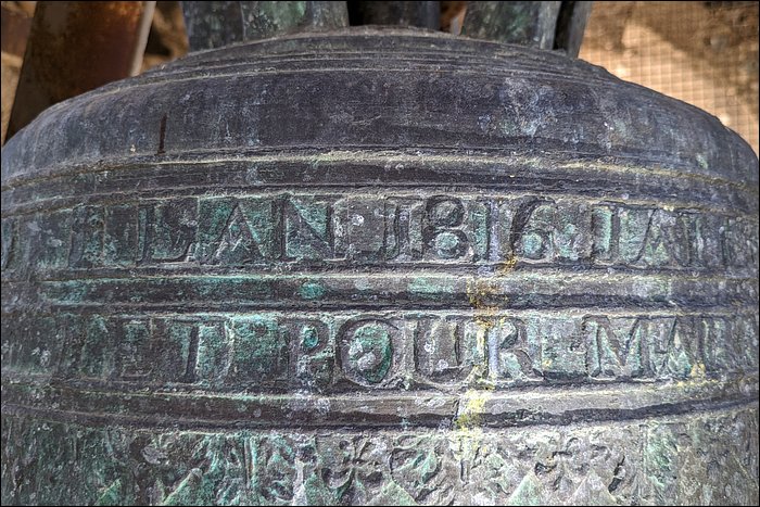 Si l’on peut imaginer que le fondeur est BARRARD François, le F signifiant souvent ce type de prénom en cette époque, il s’avère ni plus ni moins que c’est un piège. Ce qui est mentionné ici est BARRARD FONDEURS. C’est d’ailleurs une déduction que nous faisons avec une (seule) autre cloche en Ardèche : Mayres ; minorant toutefois que cette dernière a été fondue avec les Limaux. Comparaison d’épigraphie faite : les A et les R proviennent des mêmes matrices.