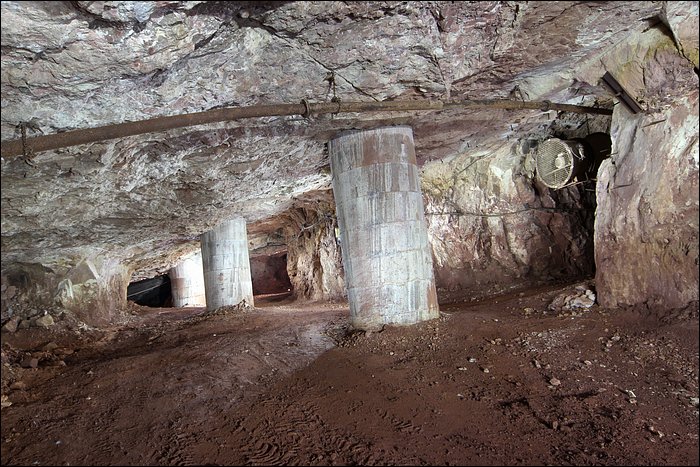 A côté, deux méga entrées, dont l'une possède une loge pour un ventilateur. On descend, c’est pentu et… front de taille au bout de 15 mètres de même. L’explication de ces embryons de mines n’est pas compliquée à obtenir. L’Etat a octroyé un permis pour l’ouverture de nouvelles mines souterraines. Avec un permis début des années 2010, ce sont simplement des mines qui devaient être opérationnelles fin 2015. Il s’avère toutefois que la conjoncture n’a pas porté ce projet pour l’instant.