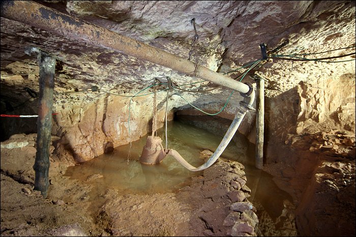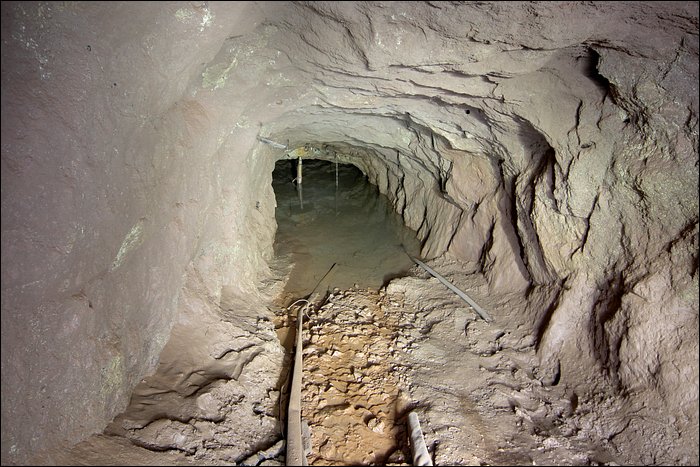 Là où un mystère se forme, c’est que le souterrain est d’une apparence soignée comme s’il était maintenu en exploitation, or il se trouve en état d’abandon total. Le ventilateur est alimenté par un 380 volts. De plus, tout semble noyé et sans intérêt. Sans explication, nous n’en savons pas plus.
