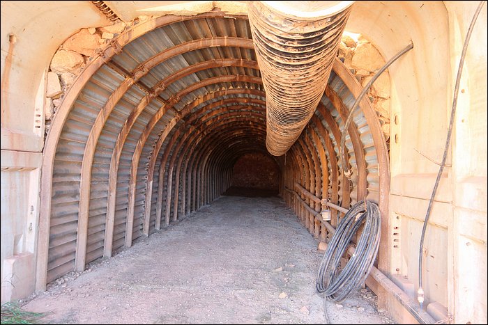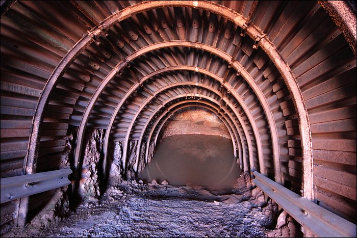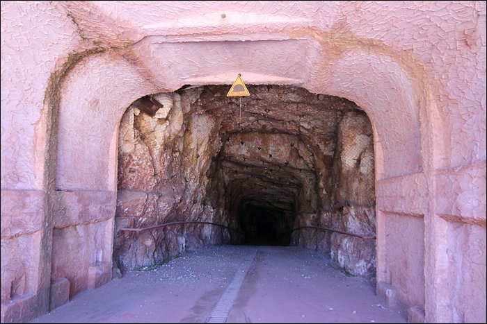 On décide de descendre plein pot à pieds vers l’usine. En faisant le tour d’un monticule, nous visitons le secteur des sauterelles : l’acheminement des minerais par convoyeurs mobiles. On trouve une méga entrée, avec une méga descenderie. Je m’engage dans l’entrée et là stupéfaction, elle débouche au bout de 15 mètres sur un front de taille.