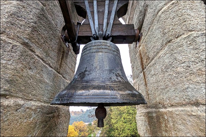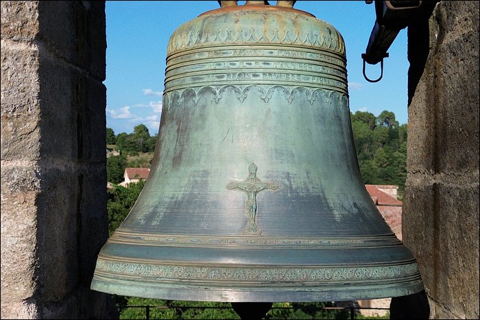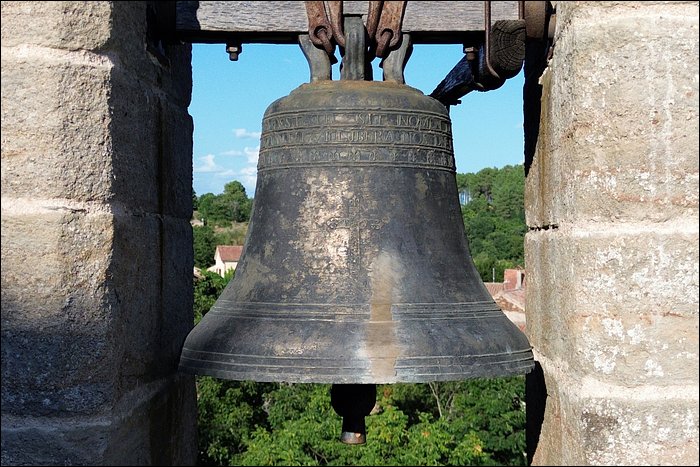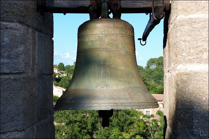 De mémoire, et sous certaines réserves car cela fut écouté d’une oreille un peu trop distraite, elle proviendrait du don d’un maire, qui a voulu fêter, ou tout du moins marquer le coup, de son élection. La cloche étant notablement grande, il a fallu retailler le mur afin qu’elle entre dans l’arche.