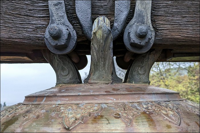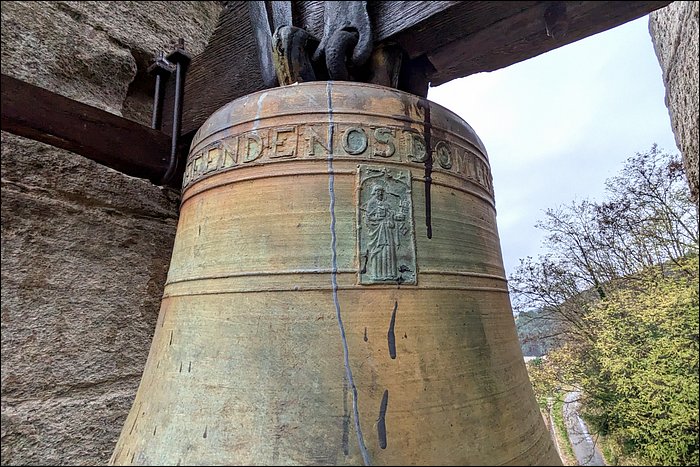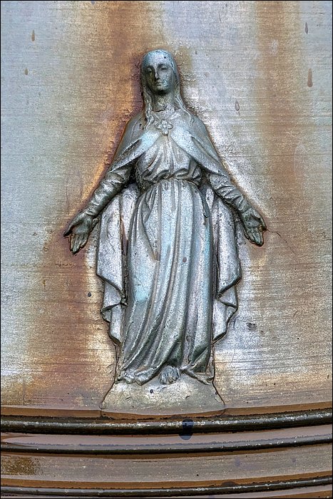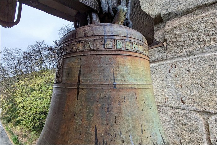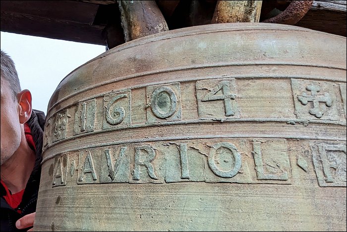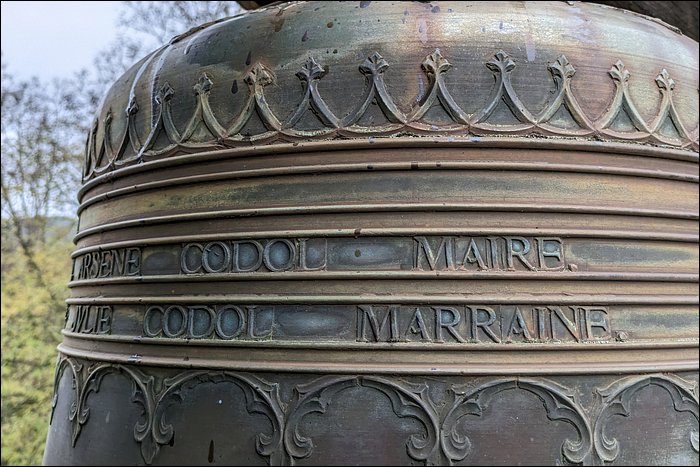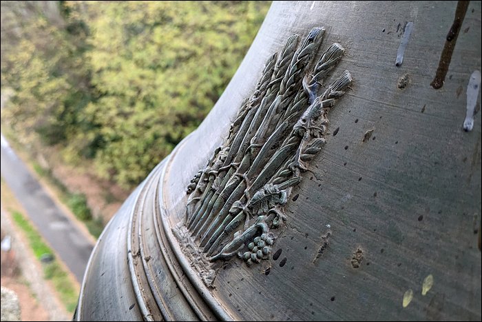 Elle sonne un Sol#(3) soyeux. Elle pèse environ 425 kilogrammes en profil renforcé. Il s’agit d’une très classique mais aussi classieuse cloche émanant de la fonderie des Gulliet à Lyon, pas forcément très prolixe, mais en tout cas toujours la garantie d’une grande qualité campanaire.