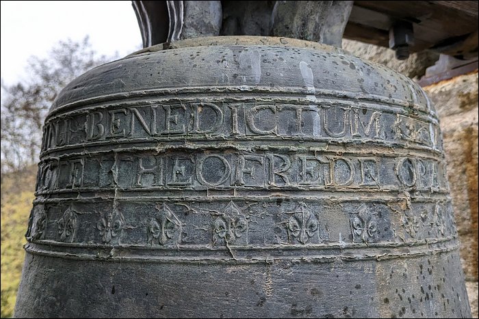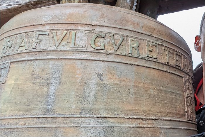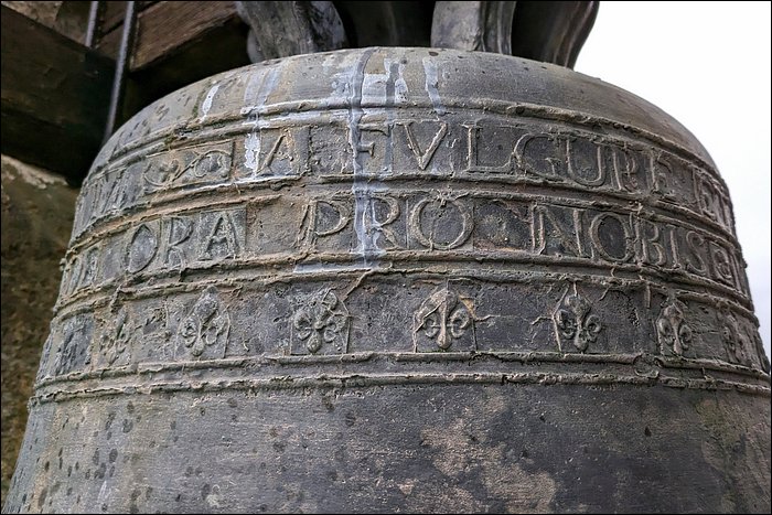 La plus petite cloche date de 1604. Sa dédicace est la suivante : + A FVLGVRE ET TEMPESTATE DEFENDE NOS DOMINE + 1604 + A. AVRIOL. F