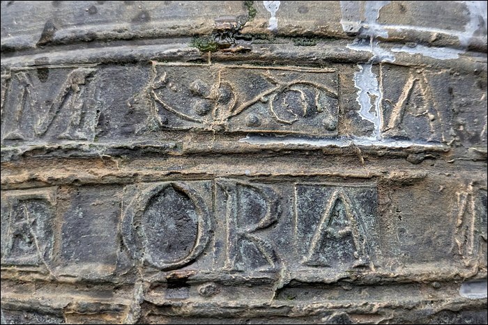 La cloche provient d’un certain fondeur nommé Auriol. On relève en effet la mention sous la dédicace : A AURIOL FECIT. Nous nous bornerons à décrire que ce fondeur est strictement inconnu dans toutes les bases de données existantes, et que l’épigraphie ne se raccorde à aucun autre objet actuellement inventorié en Ardèche. On a donc une persistance du mystère, mais en ce qui concerne Faugères, c’est loin d’être le seul – on s’y habitue dira-t-on.