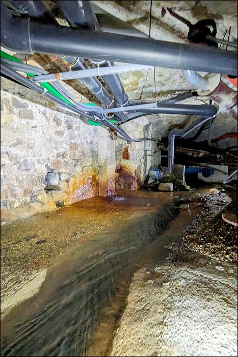 Voici une exploration souterraine pour le moins originale : une incursion dans un captage de source sous une station thermale. Le lieu est insoupçonné, du fait que la sortie de la rivière est noyée dans un déluge de végétation et de rochers. C’est pourtant une ville que j’eus fréquenté ; régulièrement non, mais tout du moins quelques fois. Je n’avais jamais imaginé un endroit pareil. C’est un tunnel qui me fut présenté par un ami, sous mon regard à vrai dire stupéfait.