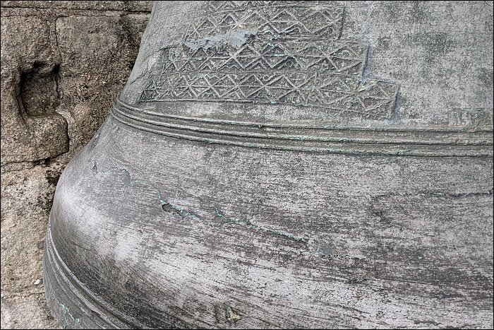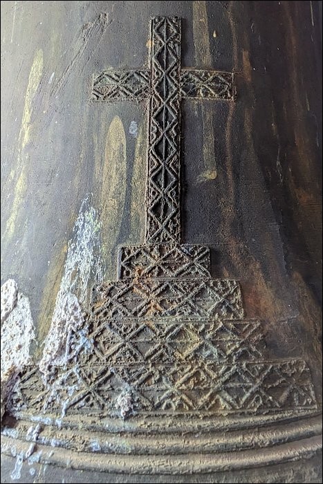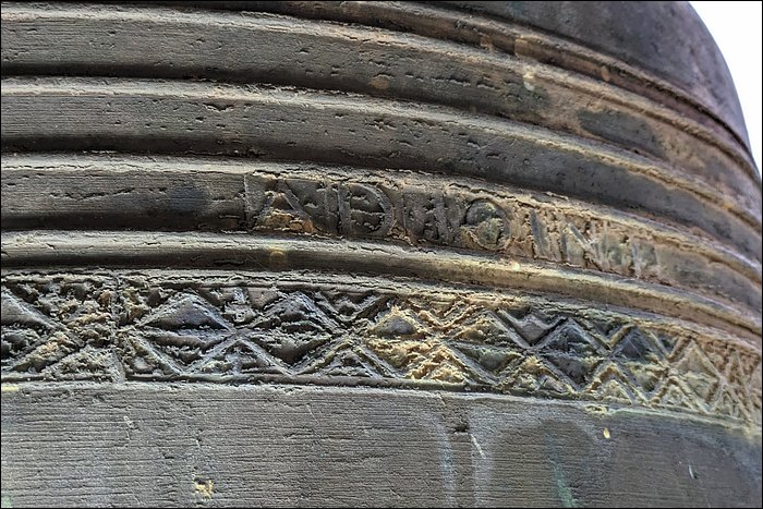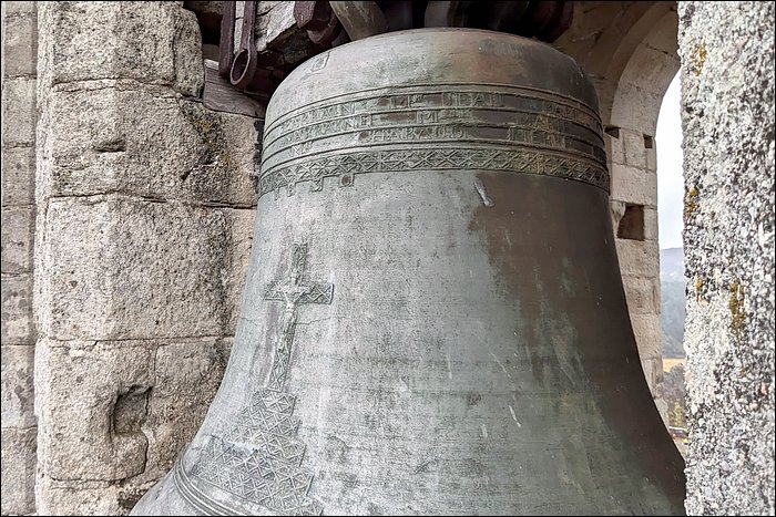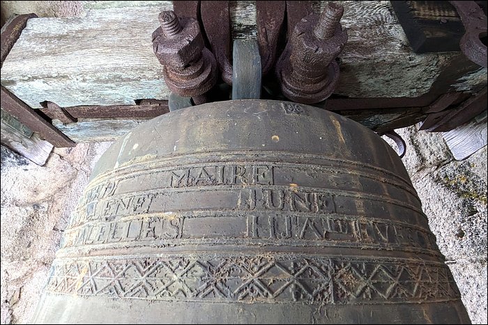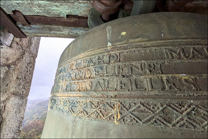 La cloche n’est pas équipée en volée. Elle possède un grand mouton en rétro-mitigé ; les paliers et tourillons manquent terriblement de graisse. L’épigraphie est peu lisible. Avant même de débuter le reportage, on ressent d’office que tout préfigure le défi.