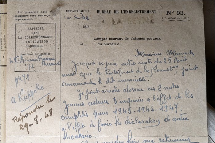 Dépêtrer ces informations revient purement au jeu de piste. Il s’avère que dans les multiples tas de courriers, nous l’identifions comme marseillais, puis ensuite localisé sur Bollène. Rien à voir avec notre maison. L’hypothèse de la dernière locataire est forte.