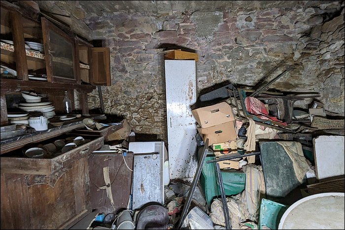 Lorsque l’on regarde l’emplacement de la maison, on comprend immédiatement qu’elle est immensément menacée par l’avancement d’une énorme carrière. Va-t-elle disparaître dans les semaines à venir ? C’est pourtant loin d’être facile à imaginer. Bref, c’est une maison qui pose beaucoup plus de questions que de réponses.