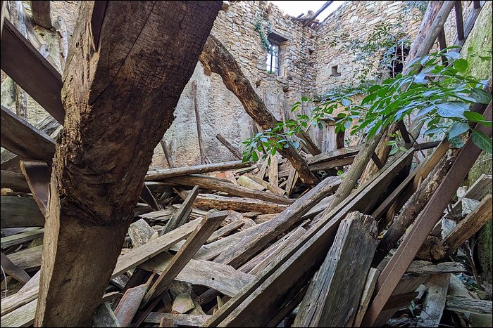 On pourrait avoir une désaffectation de la ferme durant la seconde guerre mondiale. A la suite de quoi, l’établissement aurait été diversement repris. L’intérieur témoigne de poutrelles-hourdis, des travaux typiques des années 90-2000 en Ardèche. Rénovation trop exigeante, qui sait ? Le domaine est en état d’abandon depuis une date que l’on pourrait estimer voisine de 2015.