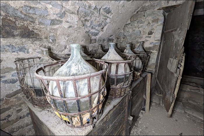 Le domaine originel est optimiste et exaltant. Il s’agit de vastes terrains, de belles caves, des dépendances cossues. En 1911, la maisonnée fait état d’un domestique. La vie doit être plutôt besogneuse mais relativement aisée. La présence de très grosses dames-jeannes 60 litres nous fait supposer une activité vinicole, accolée à des cultures et à un verger. L’arrière du terrain possède un très gros réservoir, formant une mare assez dangereuse d’ailleurs.