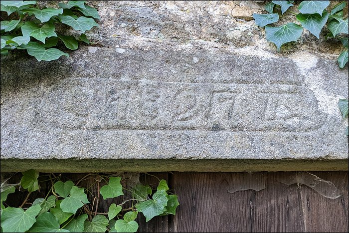 Au sein du domaine, un porche mentionne la date 1827. Assez curieusement, ce porche est situé tout en bas, et donc ni à la porte principale actuelle, ni à front de rue. Le plan de cadastre napoléonien (AD ARD 1833 section C feuillet 2) mentionne une structure qui laisse à penser que des remaniements de bâtiments ont été constants. En tout état de cause, faire hypothèse que le domaine débute en 1827 est plausible.