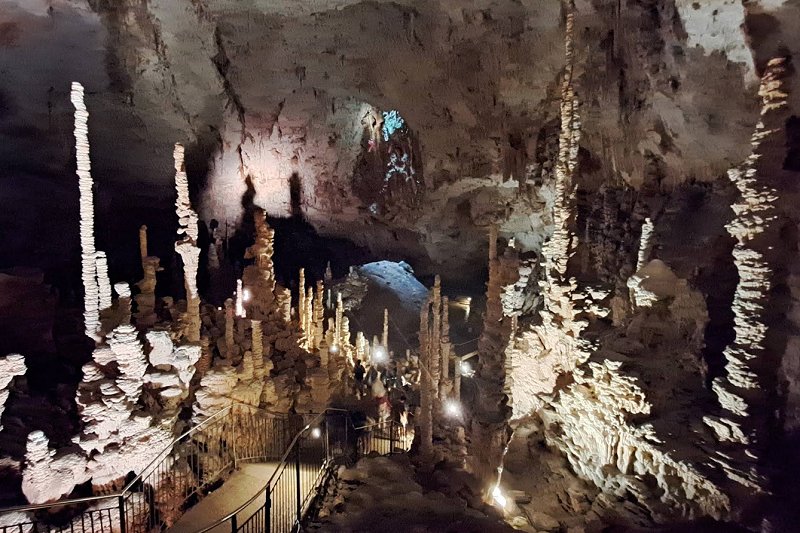 Le parcours - environ 1 heure à 1 heure 15 - fait 700 mètres et vous emmène à travers plusieurs salles spectaculaires dont la salle du chaos, un impressionnant éboulis de blocs énormes, vestige d’effondrements anciens. Aussi, les palmiers, des colonnes stalagmitiques de 15 à 20 mètres de haut qui ressemblent à des troncs de palmiers fossilisés. La salle des concrétions blanches, un festival de fistuleuses (fines stalactites creuses), d’excentriques (cristaux qui défient la gravité) et de draperies translucides d’une pureté incroyable. Le clou du spectacle c’est la pile d’assiettes. C’est un empilement de disques de calcite de plus de 20 mètres.