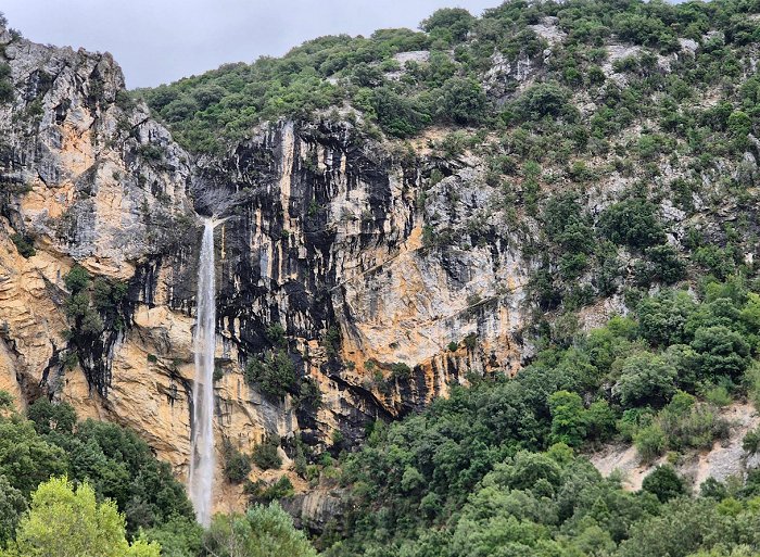 4) Pissevieille-Wasserfall bei Vallon-Pont-d'Arc. Ein hoher Fall von bis zu 80 Metern, sehr beeindruckend, wenn er Wasser führt. Zeitweise wasserführend, erreichbar über eine Wanderung entlang des Baches.
