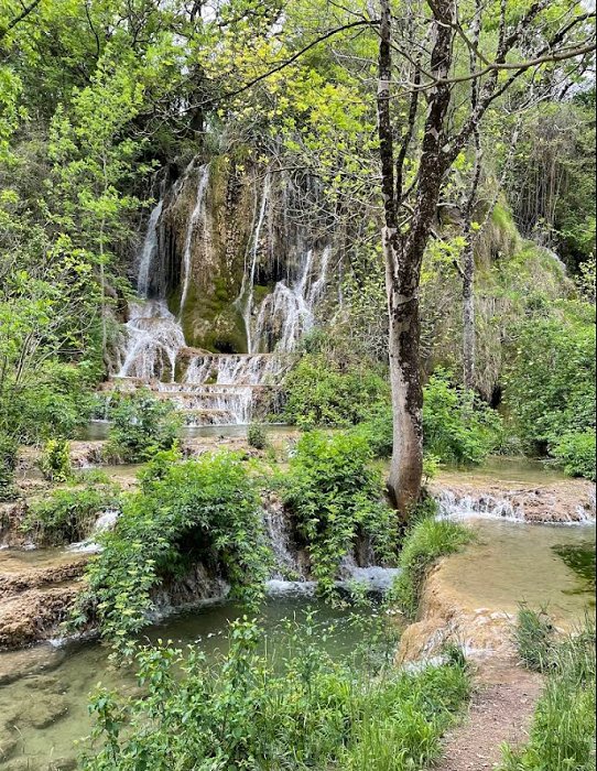 3) Rochecolombe-Wasserfall, nahe dem Dorf Rochecolombe. Türkisfarbenes Wasser, ein bescheidener, aber hübscher Wasserfall, gespeist vom unterirdischen Fluss Ibie. Zeitweise wasserführend, leicht erreichbar, 10–15 Minuten Fußweg.