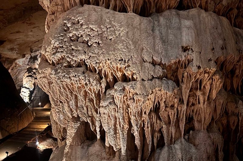 Les salles sont tout aussi grandioses. La salle des rois, haute de 20 mètres, abrite des piliers stalagmitiques massifs ressemblant à des trônes pétrifiés. En 2025, une nouvelle scénographie immersive renforce l'émerveillement. Des projections poétiques et des éclairages LED dynamiques transforment les visites en voyage sensoriel, avec des narrations audio qui évoquent des légendes locales. C'est comme si la grotte prenait vie, enseignant discrètement la fragilité de ces formations, une stalactite met 100 ans à grandir d'un centimètre, rappelant l'urgence de la préservation face au tourisme de masse.