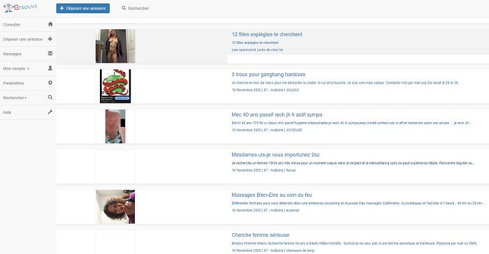 Le site de petites annonces gratuites est assez déstabilisant, de par le nombre incalculable de sites écrans, dont je n’ai pas forcément une mémoire immédiate. Au minimum : sanslendemain.net ; onseconnait.com ; une-soiree.com. J’en passe.